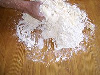 - Arbeitsfläche leicht mehlen (damit der Teig nicht kleben bleibt).