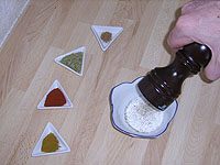 - Die Gewürze und den Rosmarin vermischen und falls vorhanden mit einem Mörser zerkleinern.