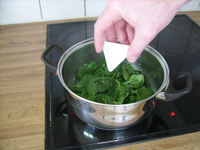 - Die Spinatblätter mehrmals gründlich mit kaltem Wasser reinigen. (Sandrückstände)