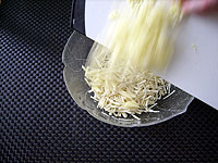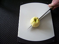 - Scheiben in dünne Streifen schneiden. (Alternativ können Sie die Äpfel auch raffeln oder in kleine Würfel schneiden)