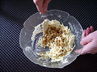 - Sellerie- und Apfelstreifen mit Mayonaise anmachen.