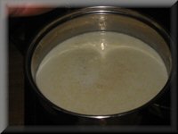 - Milch aufkochen und zur Mehlschwitze geben.